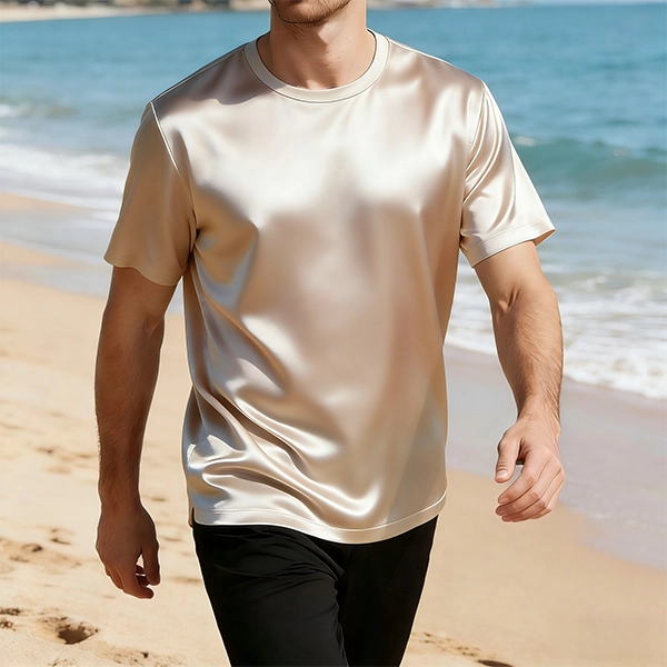 Silk Cotton Shirt Mens Shine CasualArtisan’s men’s cotton T-shirt, featuring anti-tear and breathable properties, has a smooth and soft texture, making it a high-quality choice for sports wear.