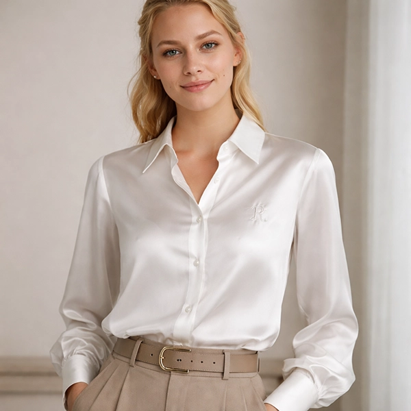 Long Sleeve Silk Shirt Womens with LogoArtisan’s women’s long sleeve silk shirt crafted by artisans, is made of 100% blended cotton fabric, which is breathable and quick-drying. With a new European and American style, it is suitable for both work and casual wear.