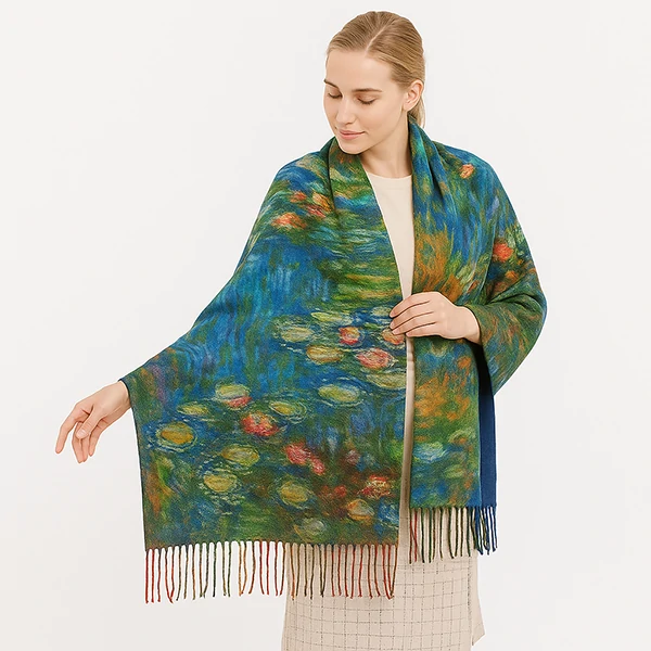 Jacquard Pashmina ScarfArtisan’s jacquard pashmina scarf is made from polyester, which is lightweight yet warm, making it ideal for spring/summer air-conditioned environments or autumn/winter layering.