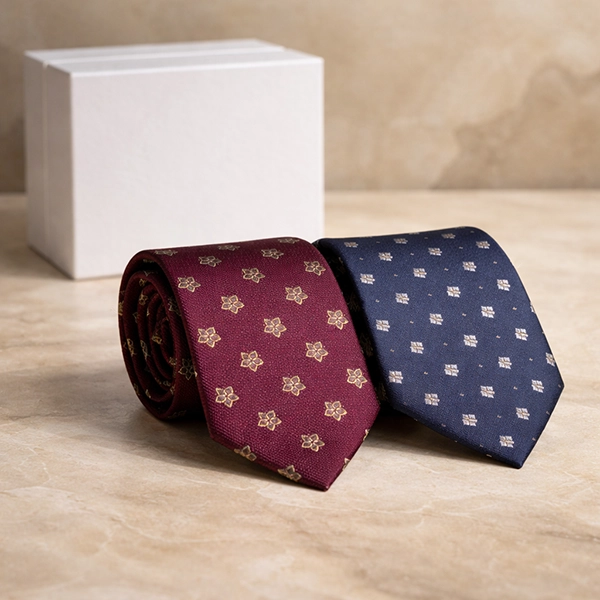 Absolutely. We offer several discrete branding options: printed or woven custom labels on the back of the tie, contrast tipping in a solid color with a hidden brand mark, or a custom hangtag. These elements are integrated during manufacturing.