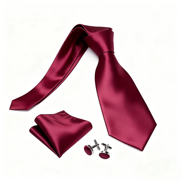 Silk Tie Pocket Square SetArtisan’s tie set is made of 100% silk, featuring a solid satin silk design. It includes a tie, pocket square, and cufflinks, ideal for weddings, formal events, or gifting. The set is customizable with various colors and supports eco-friendly production practices.
