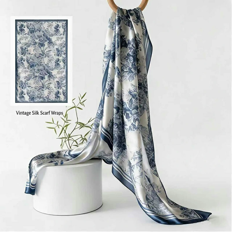 This vintage 100% silk scarf wraps from Artisan is designed for women, featuring a long length and floral pattern, perfect for summer sun protection and versatile styling. It combines digital printing technology with premium silk fabric, offering both elegance and functionality as a fashionable daily accessory or gift option.