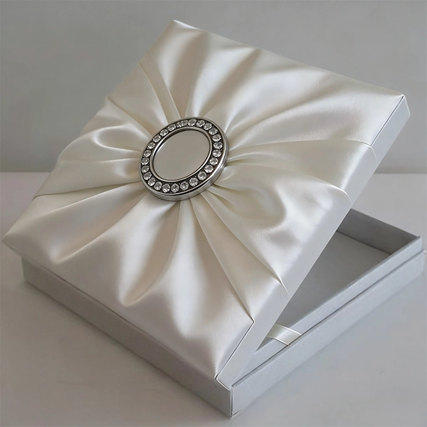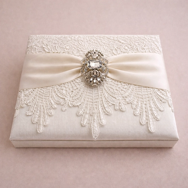 Ivory Silk & Lace Wedding Invitation BoxThis ivory silk box from Artisan uses 100% silk material, designed with a luxury style, suitable for packaging items such as wigs, cosmetics, skincare products, jewelry, and gifts.