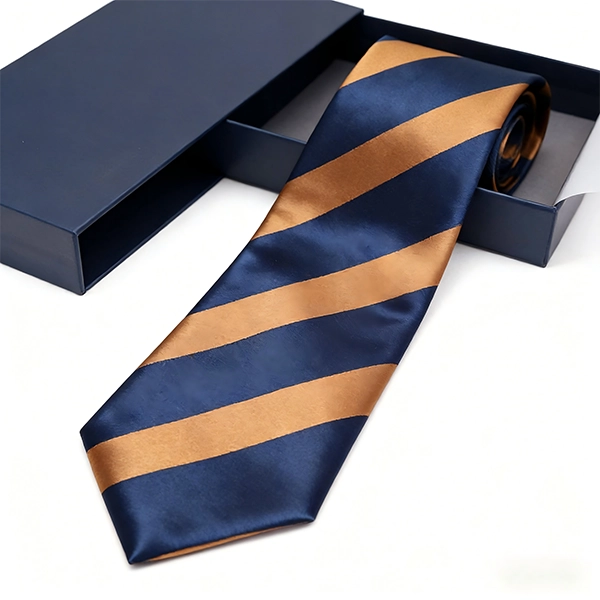 Navy and Gold Striped Silk Jacquard Necktie