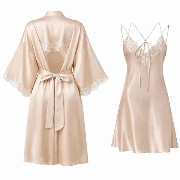 Tie-back Lace Silk Dress Robe SetArtisan’s silk night dress set with robe is crafted from pure silk with tie-back and lace design, featuring Sexy, Luxury, Cute style, and also support OED/ODM services.