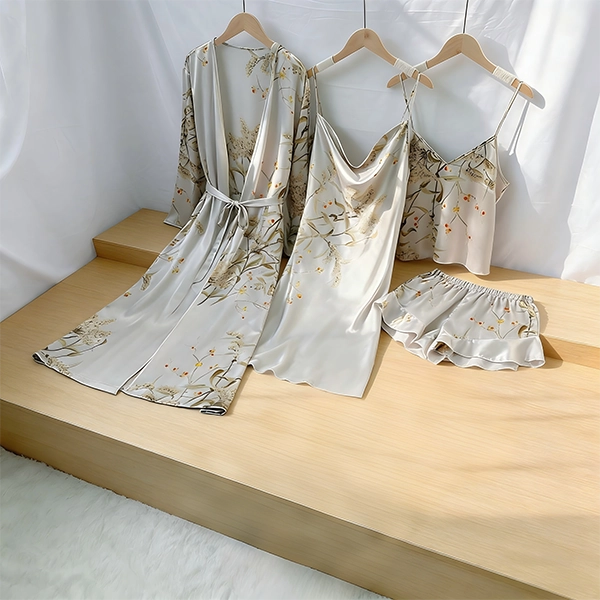 Artisan’s silk robe set is crafted from quality silk, suitable for spring, summer and autumn wearing. It is designed with luxury, elegant, fashion, classic, romantic style, available with in-stock items and OEM services.