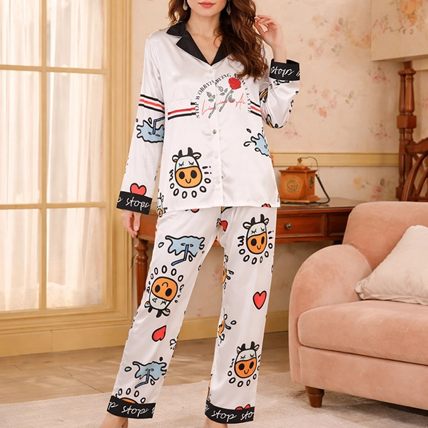 Silk Zebra PajamasArtisan’s sleepwear set features a stylish zebra and dot print, crafted from breathable and quick-dry viscose fabric. It includes long pants, a V-neck top with pockets, and a bow tie design. Suitable for ladies seeking cozy yet fashionable nightwear.