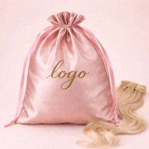 Hair Extensions Silk Packaging with Custom logoArtisan’s large silk packing pouch is made from satin silk, featuring soft and smooth fabric with custom logo you want, as well as options available for colors and sizes according to your needs.