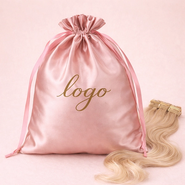 Hair Extensions Silk Packaging with Custom logoArtisan’s large silk packing pouch is made from satin silk, featuring soft and smooth fabric with custom logo you want, as well as options available for colors and sizes according to your needs.