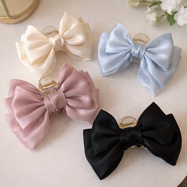 Cute Design Silk Satin HairclipArtisan’s cute silk hair clip is decorated with bows of different colors, making it more elegant and luxurious, perfect for different occasions like parties, and festivals. Accept custom colors and designs you want.
